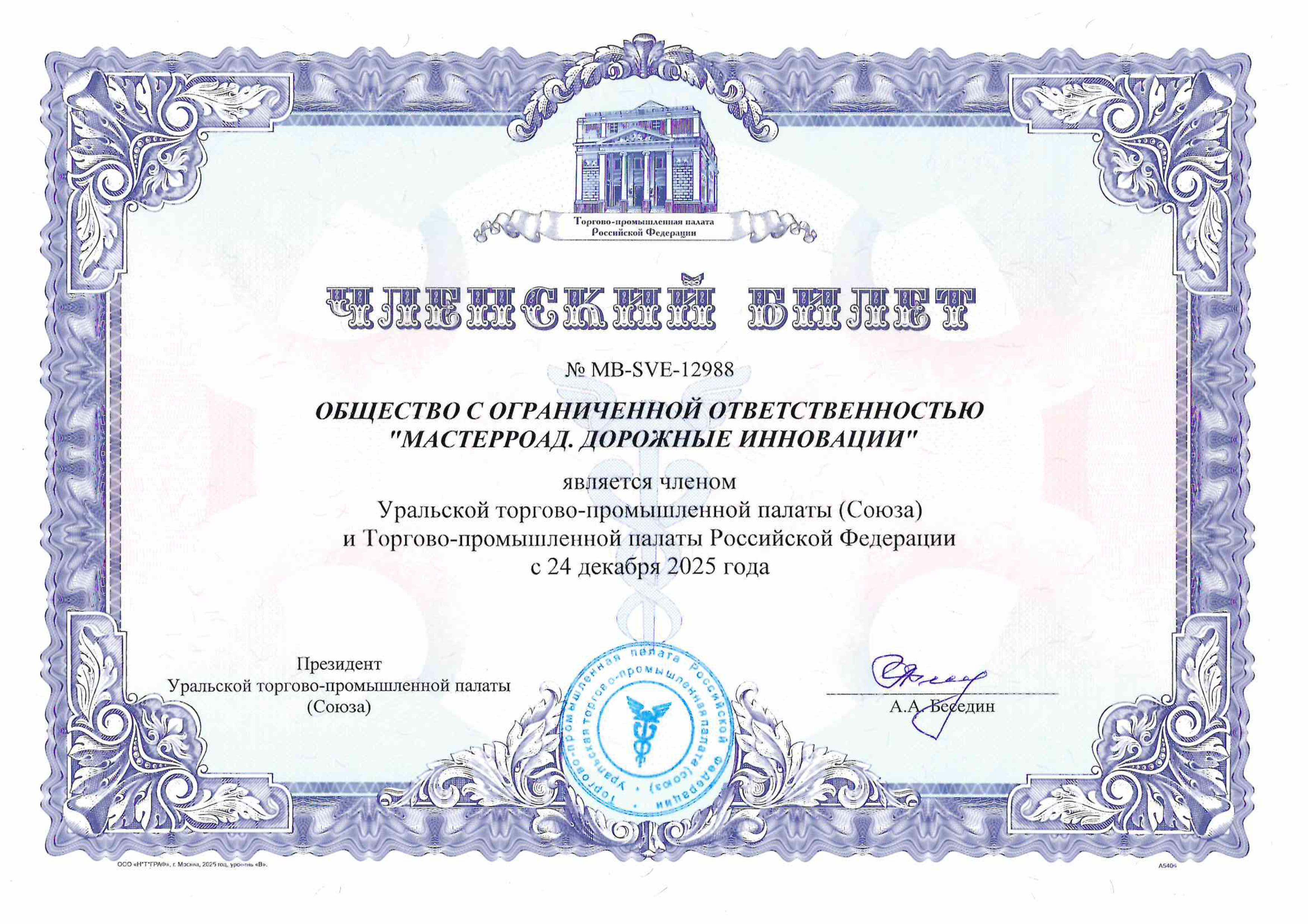 Дорожное строительство — сфера, где особенно важны доверие и репутация. Поэтому мы рады сообщить, что компания «МастерРоад. Дорожные инновации» официально стала членом Уральской торгово-промышленной палаты (УТПП) и ТПП РФ.